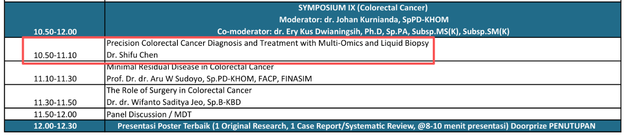 "We are honored to share our latest research and clinical insights at the Indonesia Oncology Association Annual Conference," said Dr. Shi-Fu Chen. "Our work in multi-omics and liquid biopsy is paving the way for a new era of personalized medicine in oncology. We believe these technologies hold immense promise for improving patient outcomes in colorectal cancer and other solid tumors, and we are excited to collaborate with the medical community in Indonesia to bring these advanced diagnostic solutions to patients."